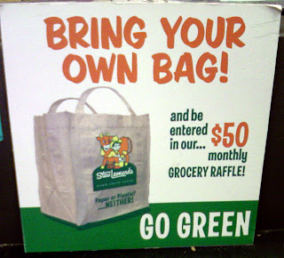 Stew Leonard’s is now promoting reusable bags. I saw it tonight when we went there.