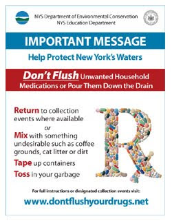 I was happy to see this poster at my local pharmacy yesterday. I had asked them before if they took back expired or unused medications, and they didn’t. It’s good that New York is stepping up its efforts to keep the water supply clean.